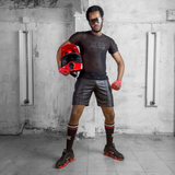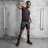 T-Shirt został uszyty z materiału składającego się w 96% z poliamidu i 4% z elastanu. Wyróżnia się lekkością i elastycznością, dzięki czemu idealnie dopasuje się do kształtu ciała. Przezroczysta tkanina dodaje mu wyjątkowego stylu, delikatnie podkreślając muskulaturę.