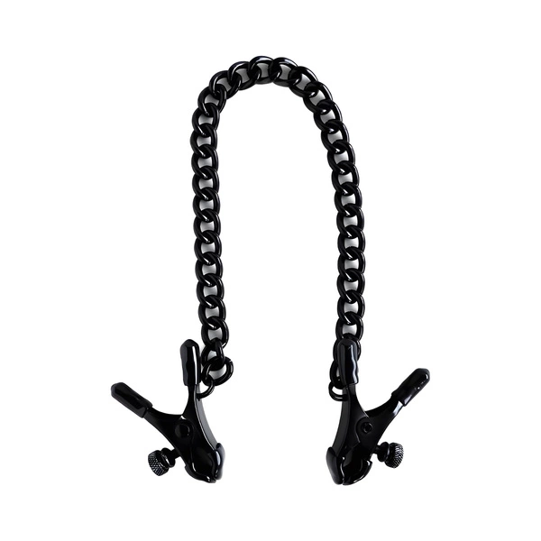 Міцне з'єднання між затискачами виконане з надійного, промислового вигляду ланцюга. Він не виконує лише естетичну функцію — це активний елемент, який реагує на кожен рух. Напруга ланцюга викликає миттєве збільшення тиску на соски, створюючи безпосередню залежність між рухом і покаранням, реакцією та ефектом. Таке рішення дозволяє динамічно керувати інтенсивністю стимуляції — від статичної до активної, від пасивної до провокаційної.