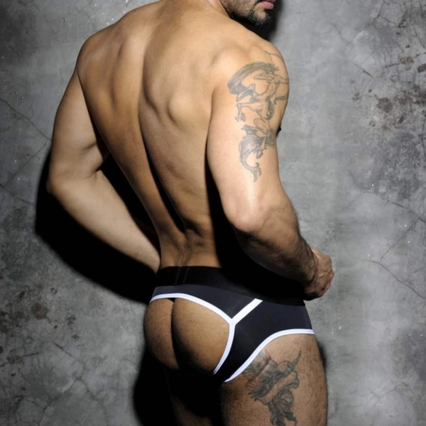 STRIPE FETISH BRIEF – чуттєві сліпи в стилі bottomless, створені для сміливих чоловіків, які люблять підкреслювати свої переваги. Відкритий задник підкреслює сідниці, надаючи всьому образу провокаційний, еротичний характер.