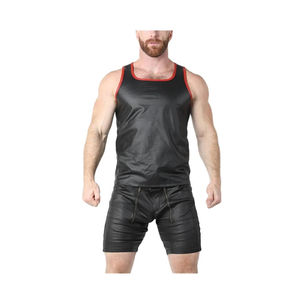 Топ ANTI CHROME є синонімом хижої елегантності та безкомпромісного сексуального шарму, створений для чоловіків, які люблять привертати погляди та відчувати на собі бажання. Його облягаючий крій підкреслює кожен м'яз, демонструючи чоловічу фігуру в найчуттєвіший спосіб. Виконаний з найвищої якості еластичної веганської шкіри (67% поліестер, 25% поліуретан, 8% спандекс), він облягає тіло, як друга шкіра, підкреслюючи рельєфні плечі та торс. Гладке, матове покриття надає йому глибини та таємничої аури, створюючи інтенсивний, гіпнотизуючий ефект. Контрастні смуги вздовж боків та виразні окантовки посилюють динамічний, домінуючий характер, роблячи цю модель ідеальною як для електризуючих ночей, сповнених пристрасті, так і для особливих випадків, коли ви хочете випромінювати магнетизм і впевненість у собі.
