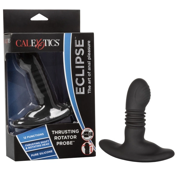 Прототип Eclipse™ Thrusting Rotator Probe — це ключ до світу непристойних анальних задоволень для щасливих новачків або еротичних експертів. Цей 12-функціональний прототип поєднує потужні вібрації та інтенсивну стимуляцію з захоплюючими обертальними та ритмічними рухами, а також двома потужними моторами.